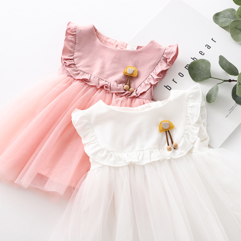 Elfairy female baby princess dress baby vest skirt summer dress newborn foreign dress mesh dress 1 year old girl