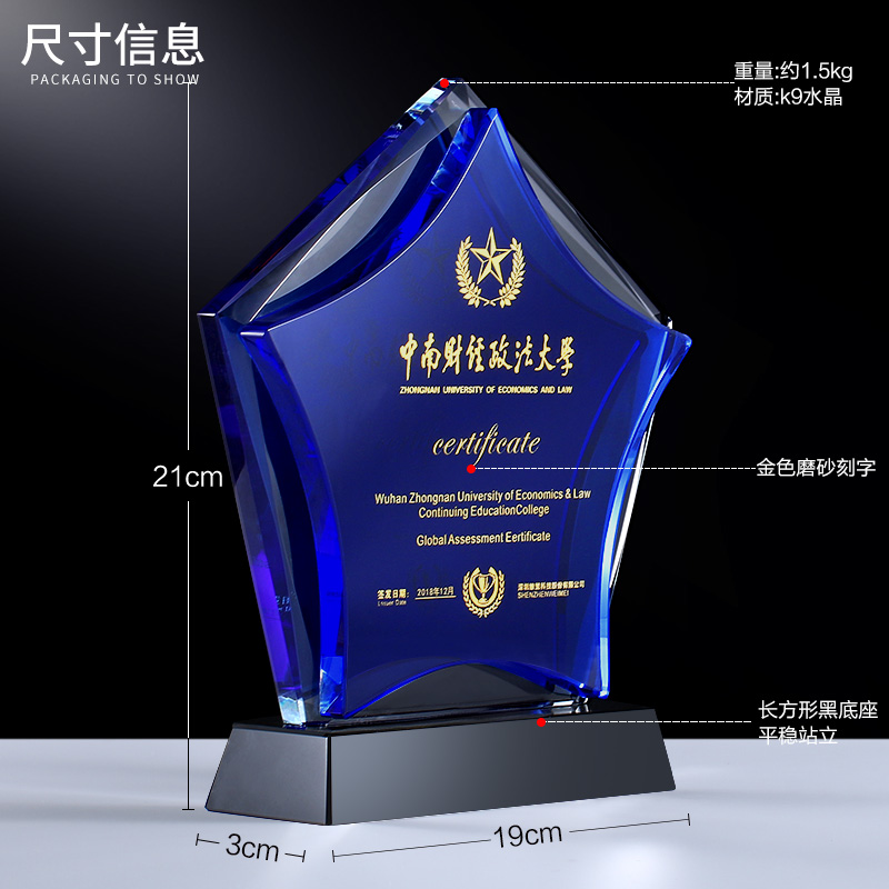 Crystal Glass Trophies Customize Excellent Employees Trophy to do the pentagram Sales Award Insurance Trophy Making lettering