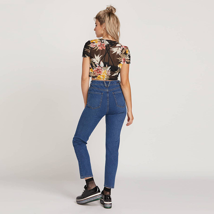 (Limit Workshop) VOLCOM High waist ladies Jeans Straight Briefs 90% Pants With Slim height 100 Lap Straight Barrel Pants