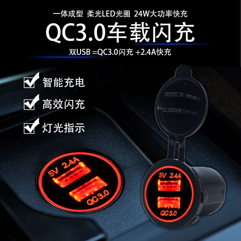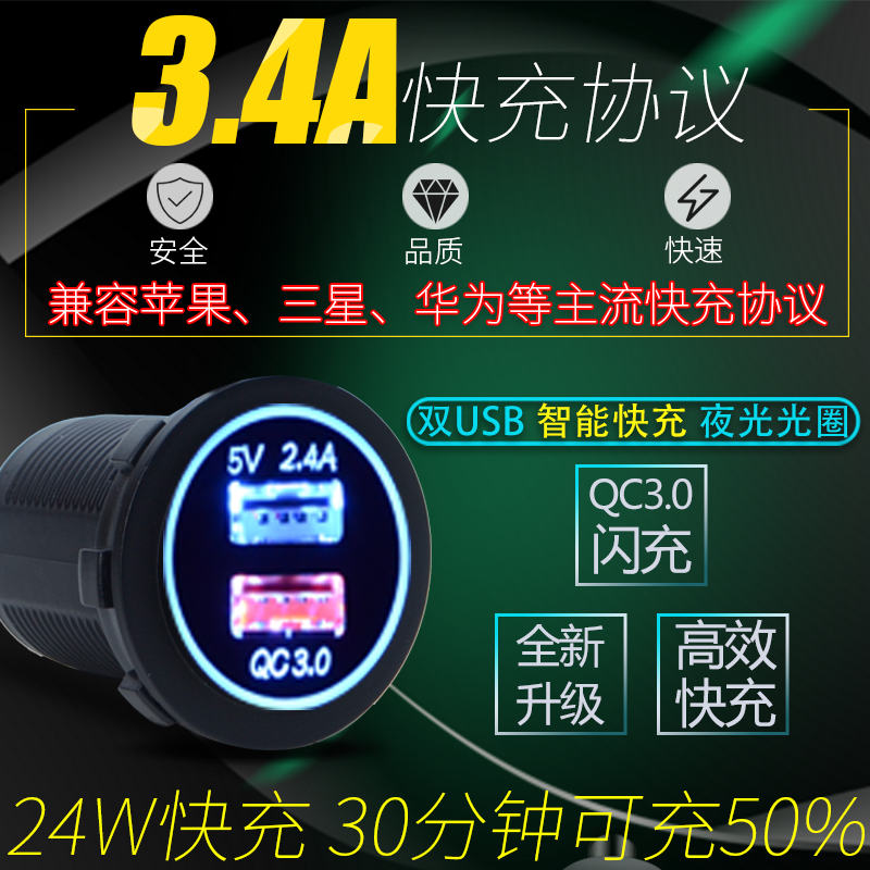 Locomotive USB charger mobile phone fast charging connector retrofit electric car charging 12V on-board QC3 0 waterproof