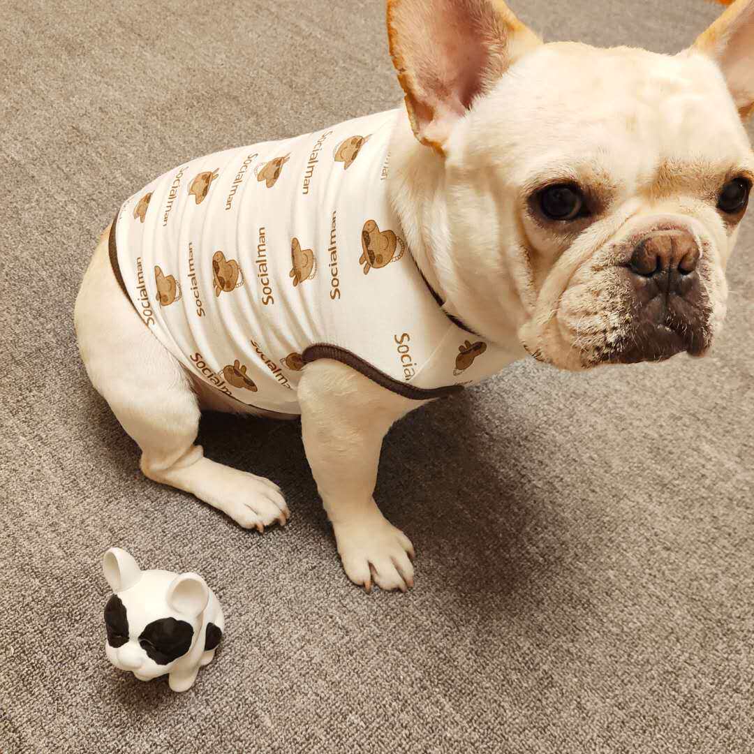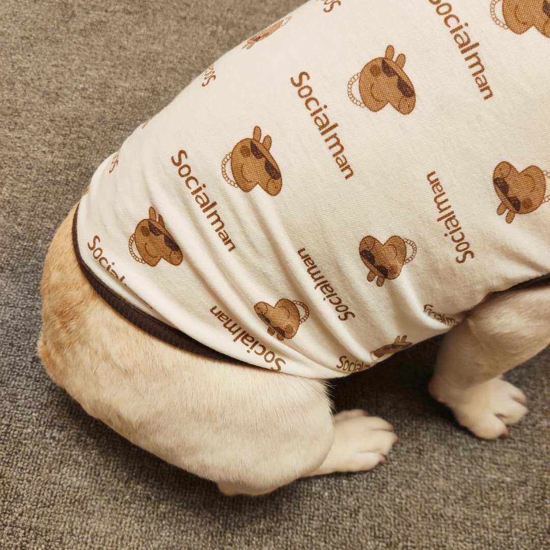 Short body fighting clothes short fat dog pug spring and summer thin section dog vest cartoon cotton and linen breathable and elastic