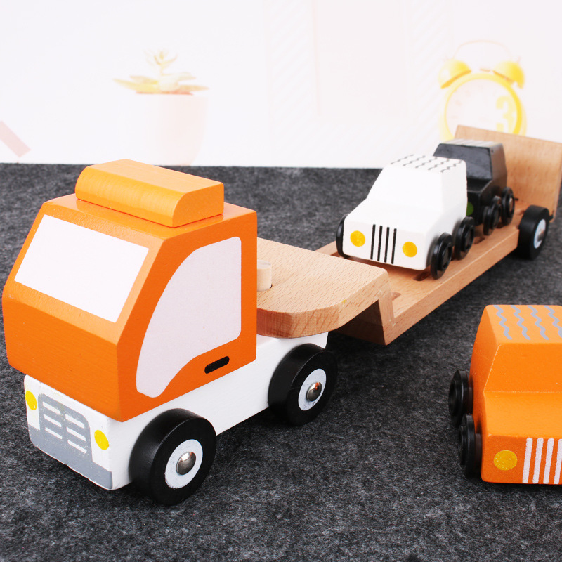 Wooden transport car simulation truck model wooden toy children's engineering vehicle loading sedan to play family wine
