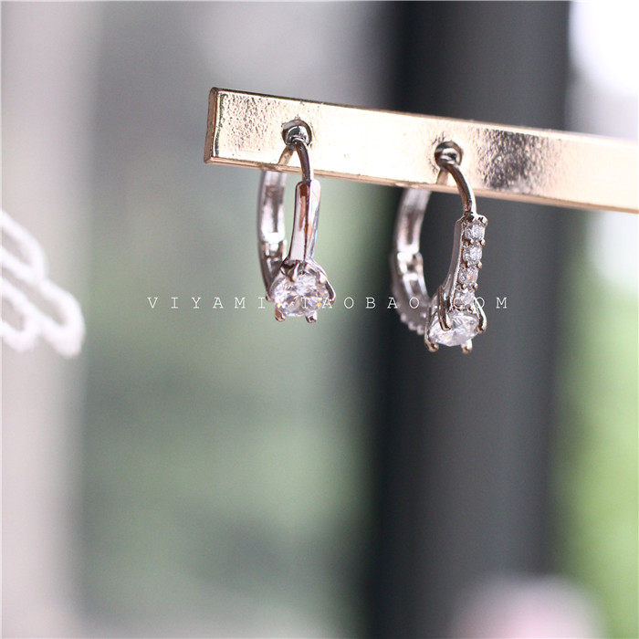Elegant Earrings South Korea Micro-Inlaid Drilling Zircon Stone Water Drill Circle Earrings Earrings Earrings Superior Earrings Mesh Red Asymmetrical Women
