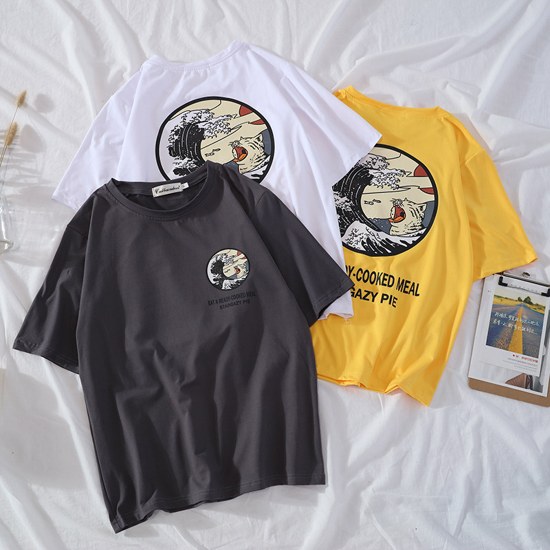Lazy wind loose tide brand short-sleeved boxing shark T-shirt ins men's fashion lovers white loose simple wild