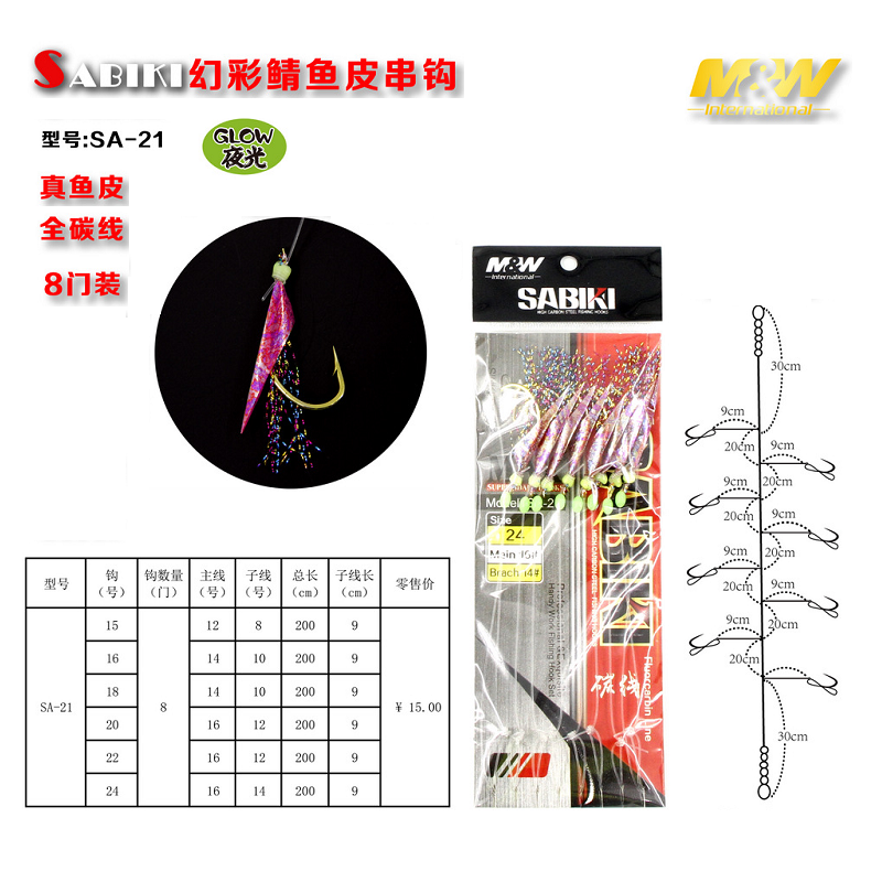 MW Symphony mackerel skin string hook Shi Hang bionic ribbon fishing set 8-door real fish skin full carbon line No 15-24 night