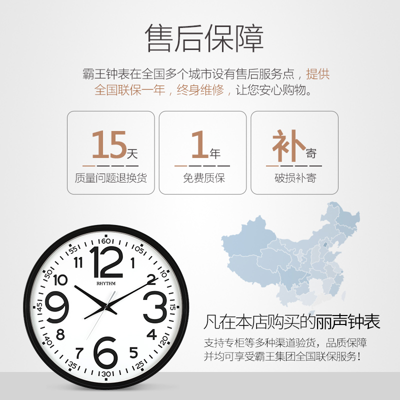 RHYTHM Lising Living Room hanging bell Large number home quartz clock modern minimalist clock big words muted watches