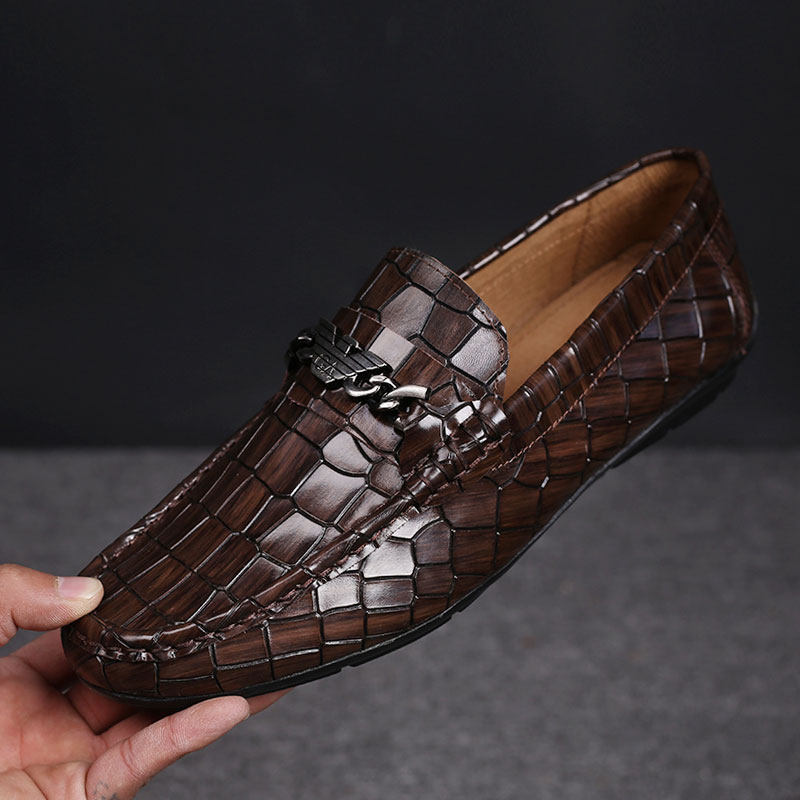 Lidena Manny Fall New Bean-Bean Shoes Man Genuine Leather Business Casual Shoes Crocodiles a Foot Pedal Sloth Man Shoe Tide