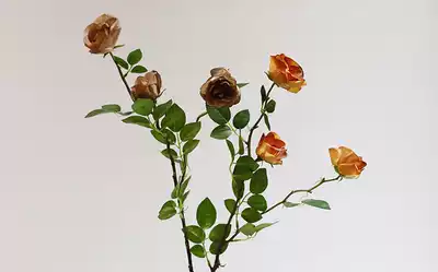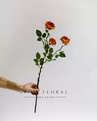 Simulation flower retro color three-headed small rose oil painting style flower weng flower arrangement hand bouquet with flower floral landscaping
