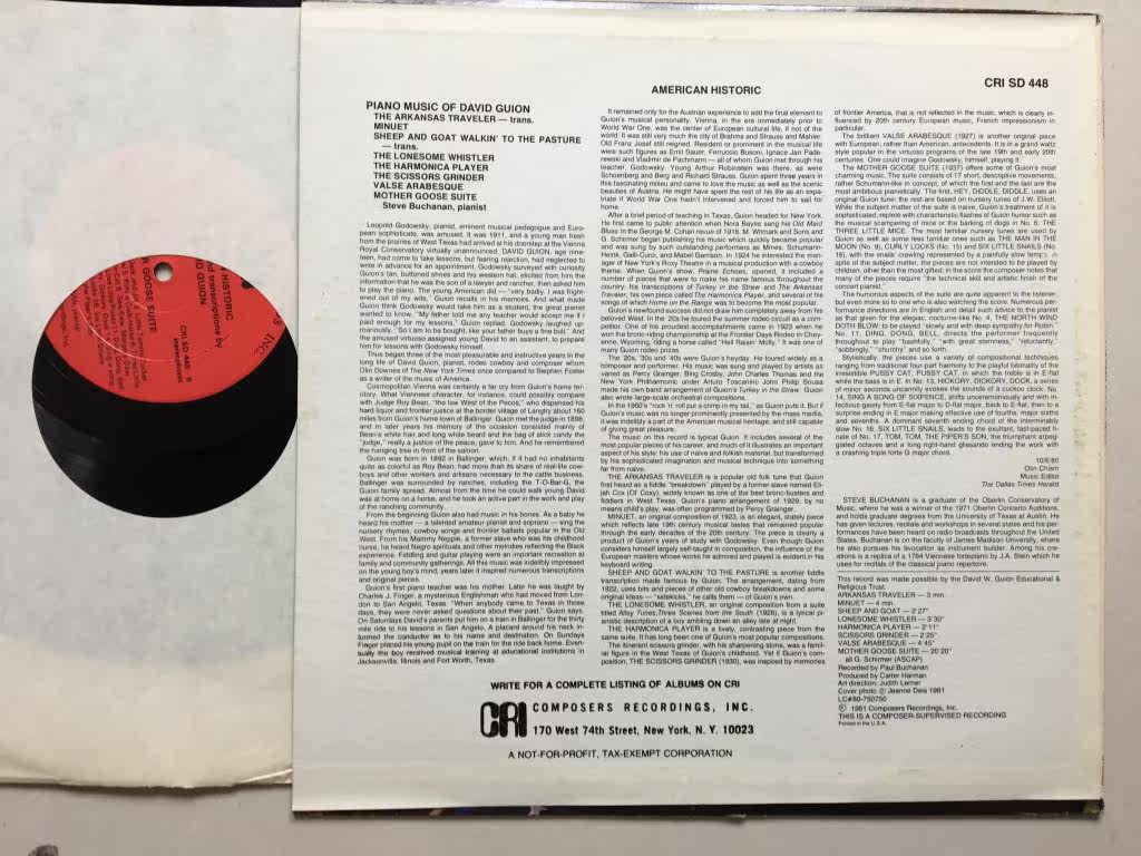 CRI Vinyl LP Pianist Steve Buchanan Plays Arkansas Traveler and More US Version