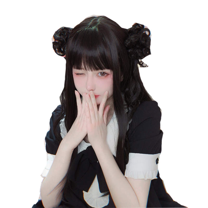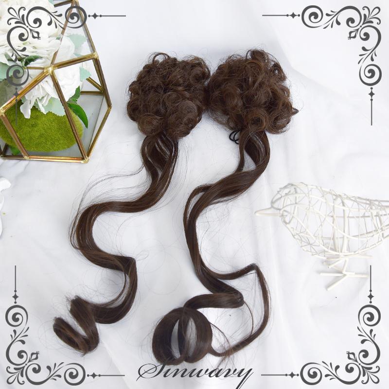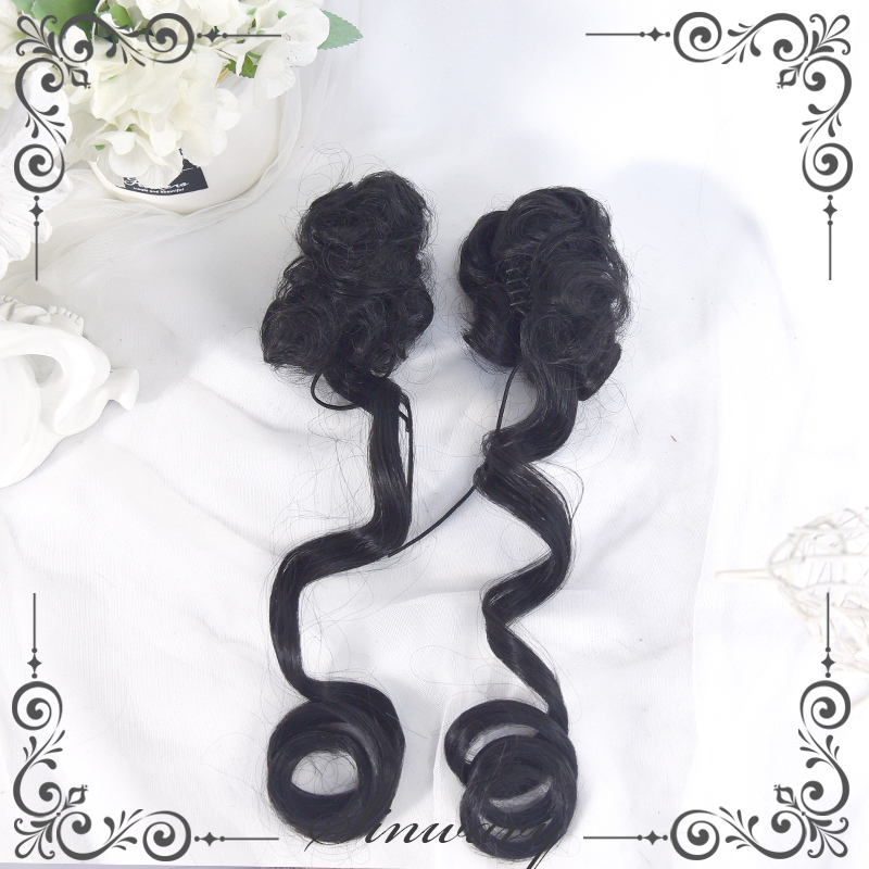 Swanjia - multicolor Harajuku soft girl lolita flower dumpling wig Chinese style black hair bag tiger mouth clip accessories