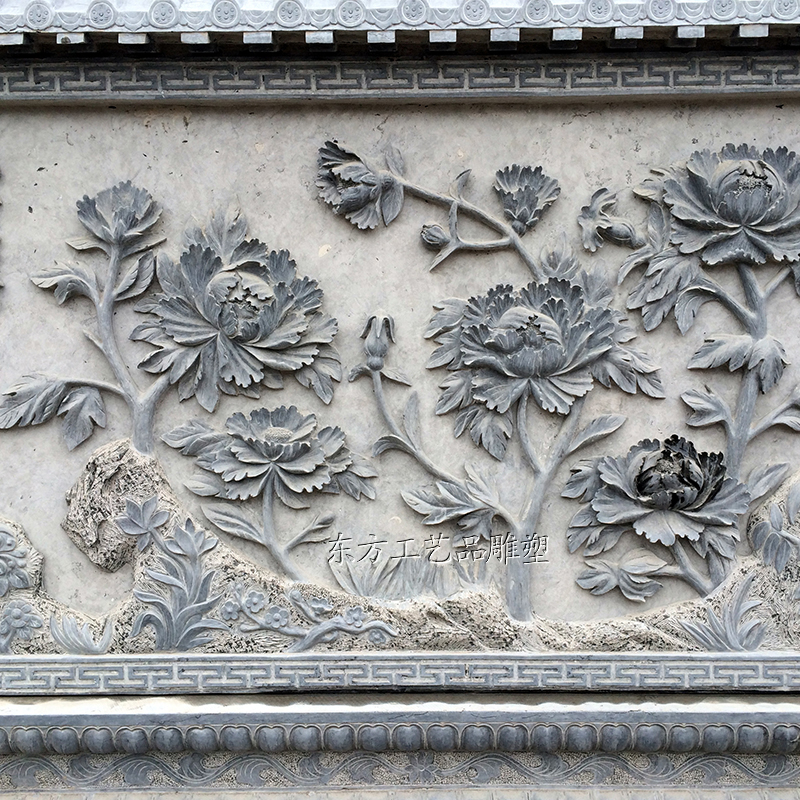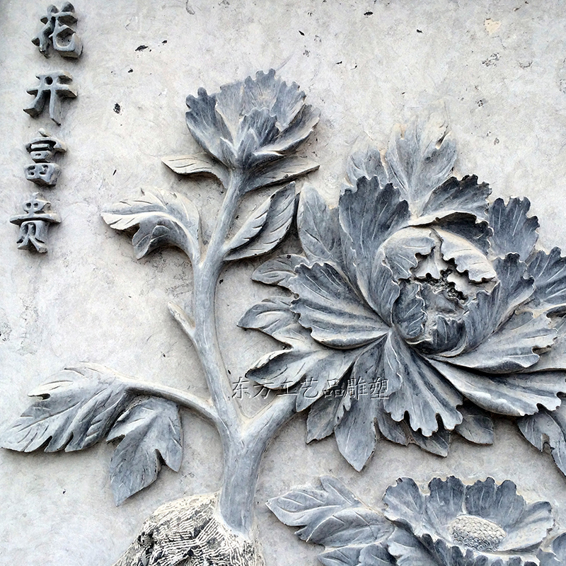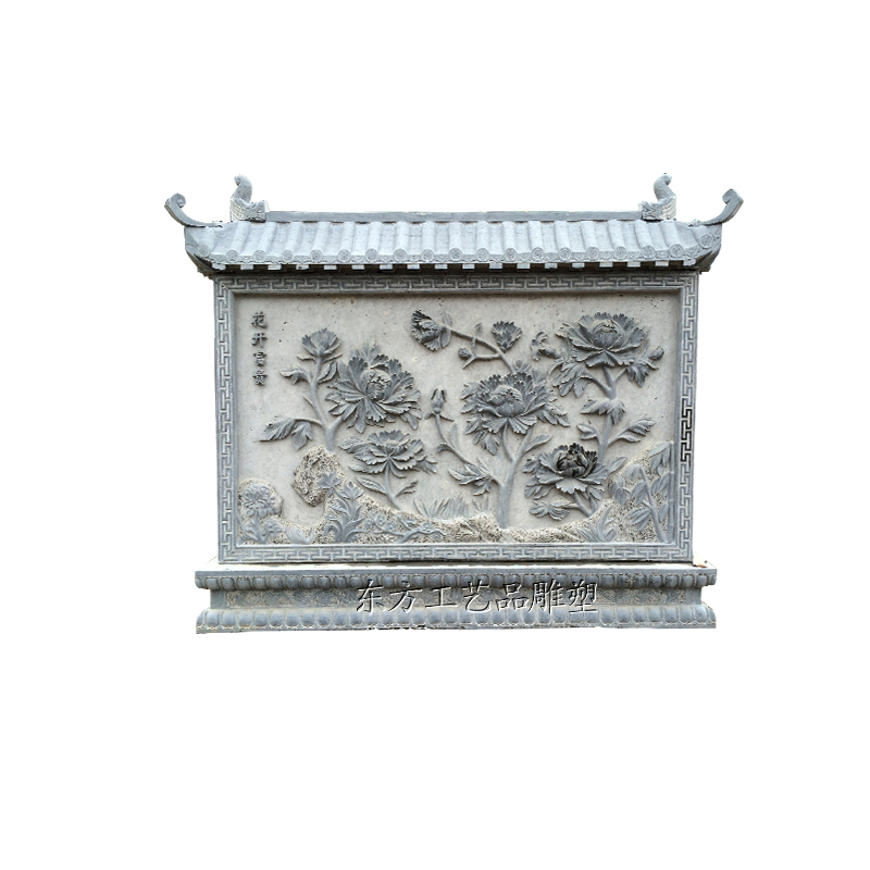 Bluestone Stone Carving Screen Wall Marble Carving Flowers Blooming Wealthy Shadow Back Wall Relief Courtyard Square Screen Wall Chinese Culture