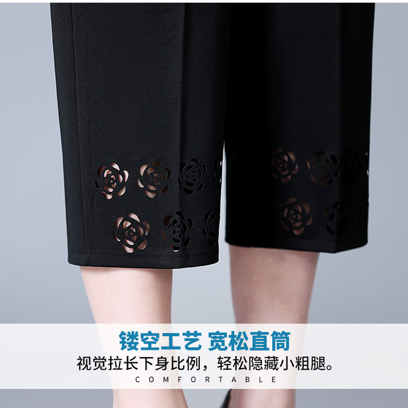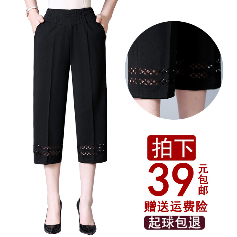 Mom pants summer thin elderly women's pants loose large size Capri pants grandma dress casual elastic high waist