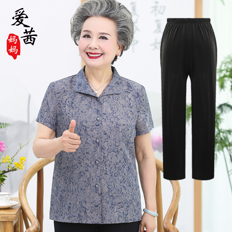 Middle-aged and elderly women in summer clothing short sleeves shirt Mom loaded with summer clothing suit old grandma's thin clothes old lady