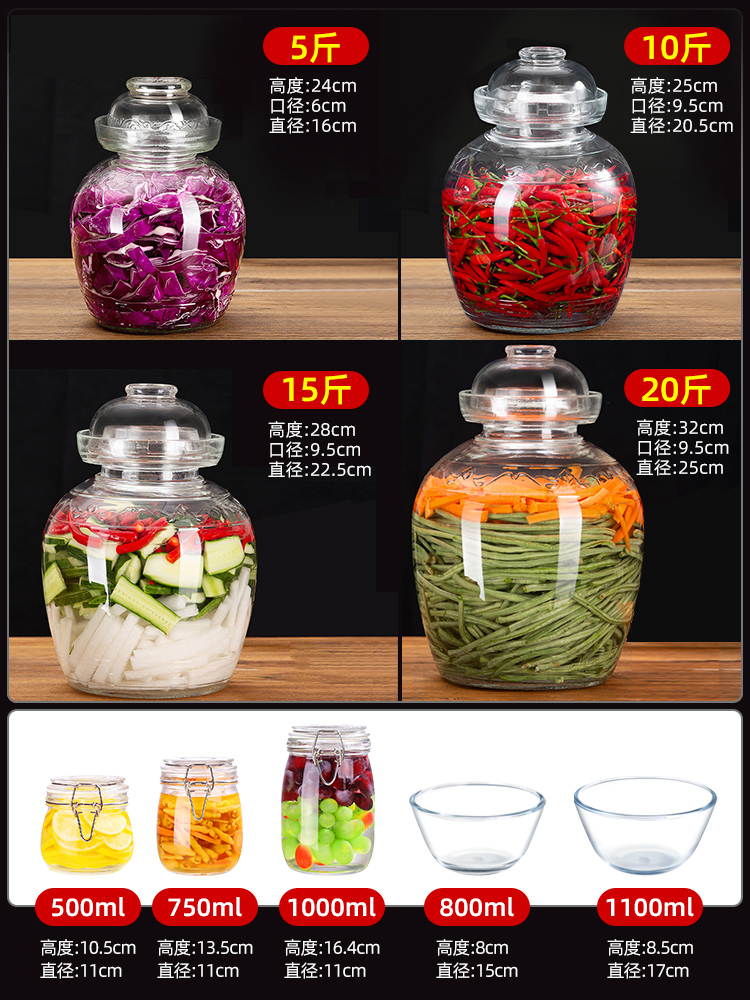 Kimchi jar home glass thick pickle jar sauerkraut jar large with lid sealed Sichuan pickle kimchi jar