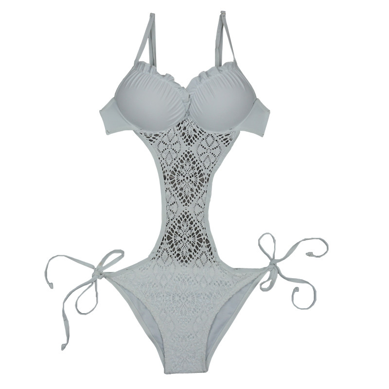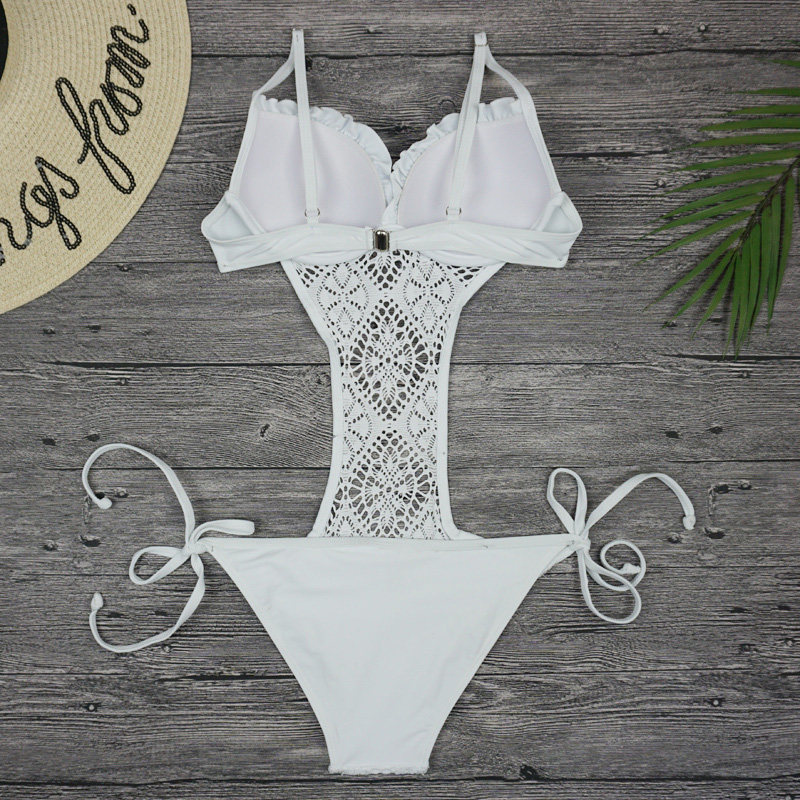 Knitted hollow sexy white fairy one-piece triangle bikini Japanese Korean style sweet steel bikini swimsuit