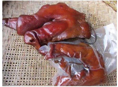 China's Hunan Tefic 500g A pig's head smoked pork head pig's face and pork in the flesh.