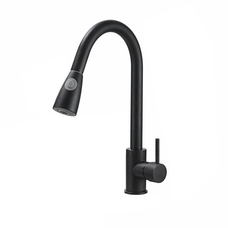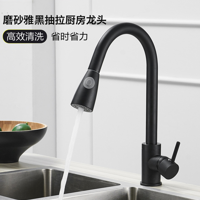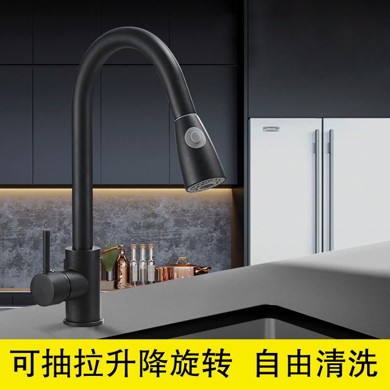 Kitchen black pull-out faucet hot and cold rotatable telescopic household sink dish washing basin nano faucet