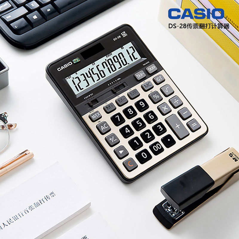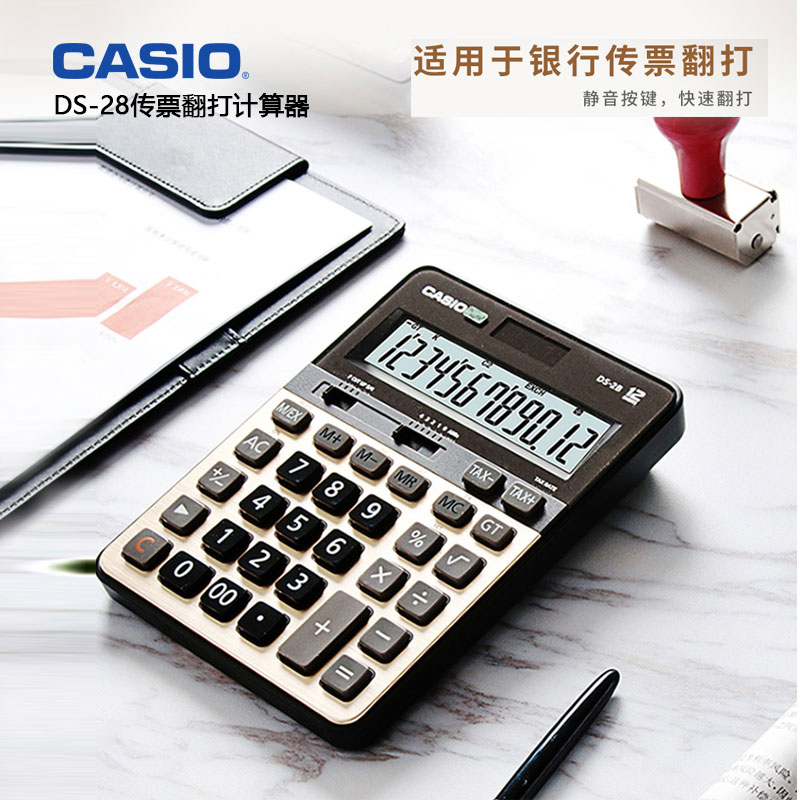 CASIOCASIODS-2B Bank Accounting Quick Flip Silent Calculator Business Type Finance Office Gold Metal Panel Large Screen Big Button Solar Computer