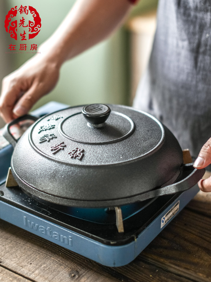 Cast iron old-fashioned cake folding pan thickened pancake chisel without coating Baking Showering the yellow-child induction cooker Gas generic