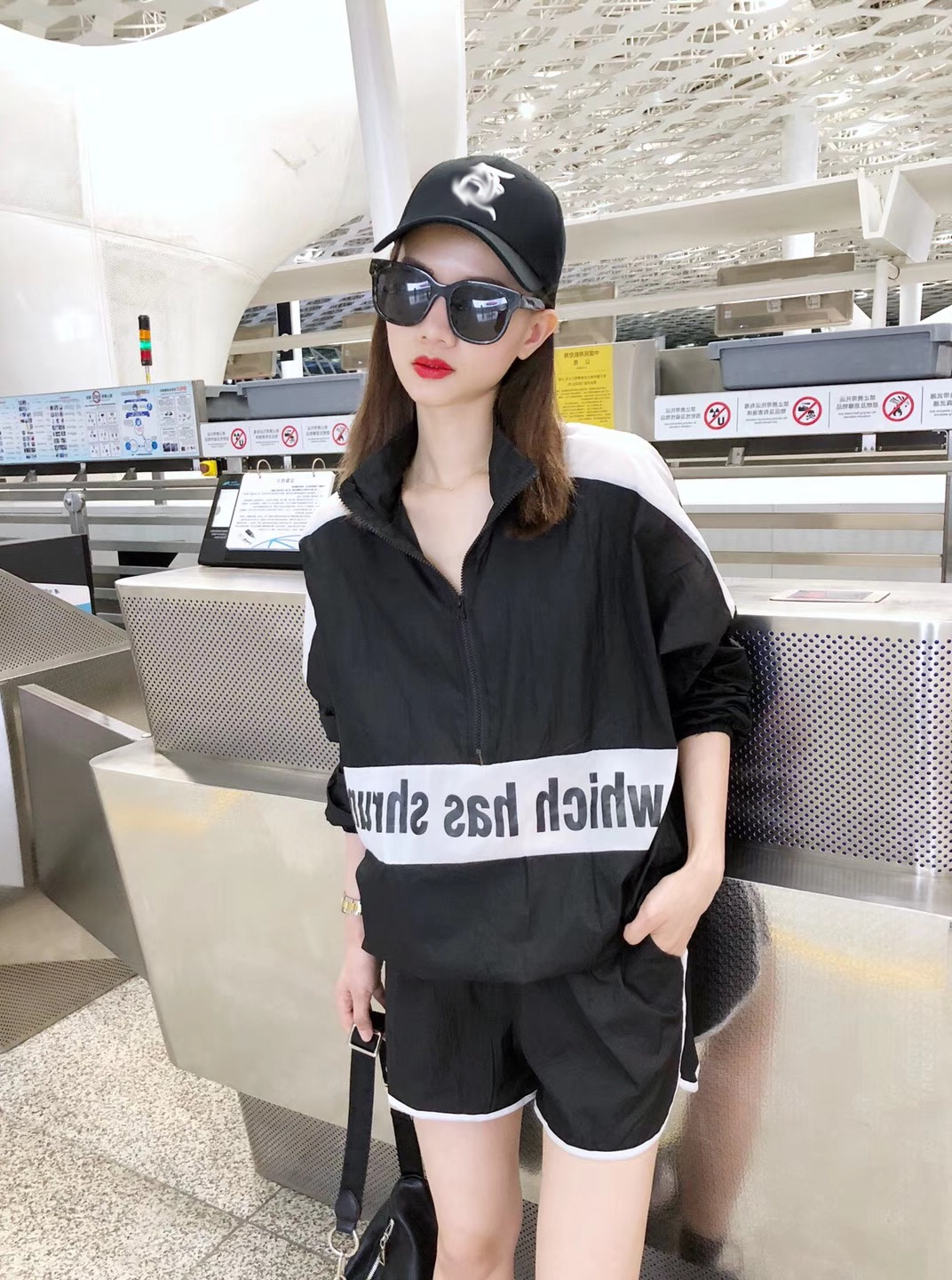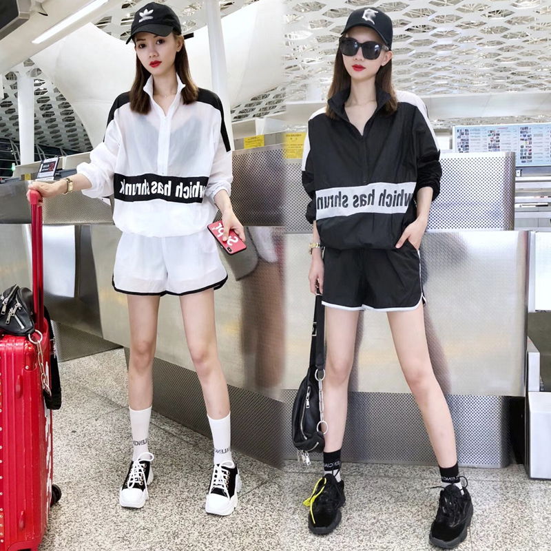 European station sports suit women summer dress 2023 new European cargo gas zip sunscreen shorts casual two pieces