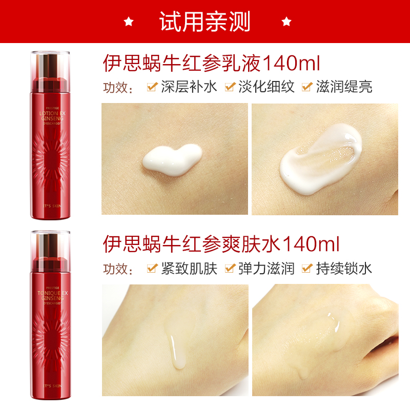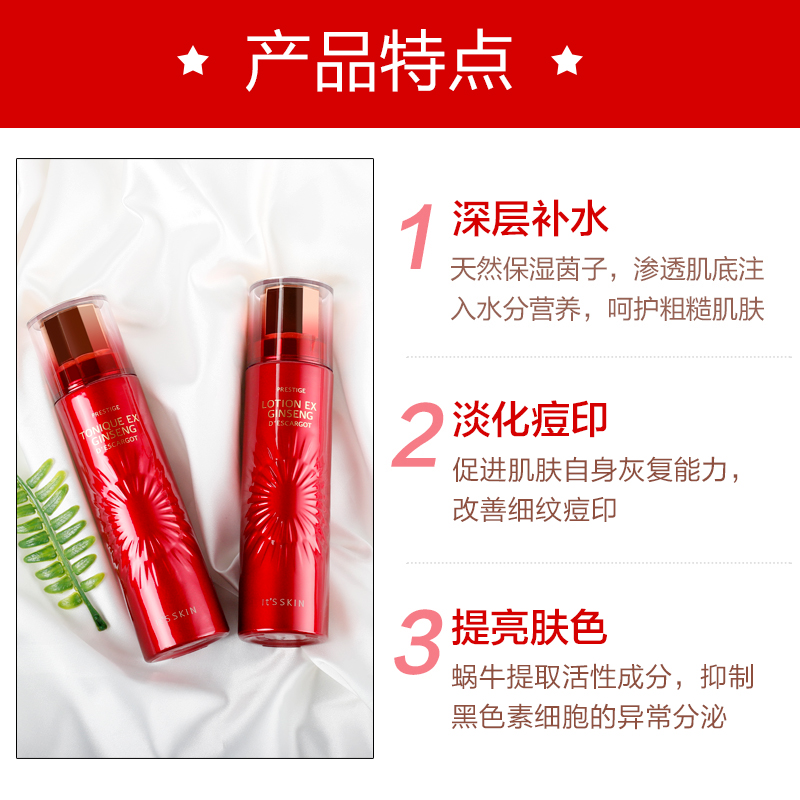 its skin Red ginseng Snail water milk set toner Female moisturizing moisturizing Korean skin care products