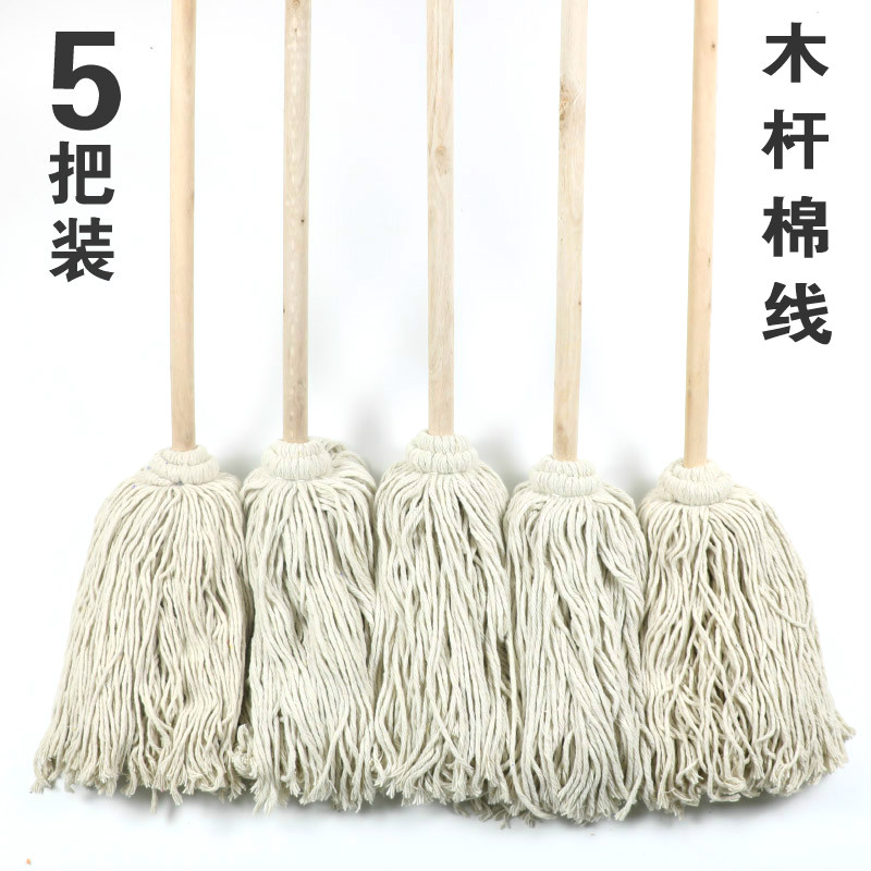 Wooden handle round head mop wooden pole large absorbent cotton thread mop cloth old-fashioned home hotel company factory clean mop
