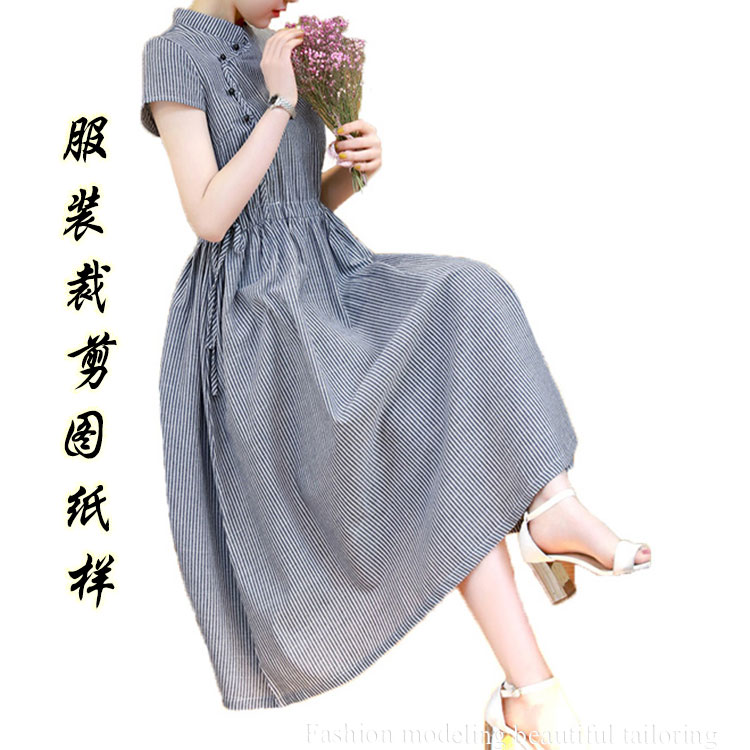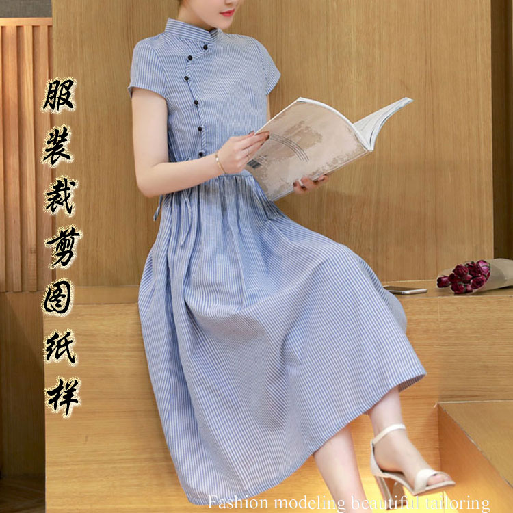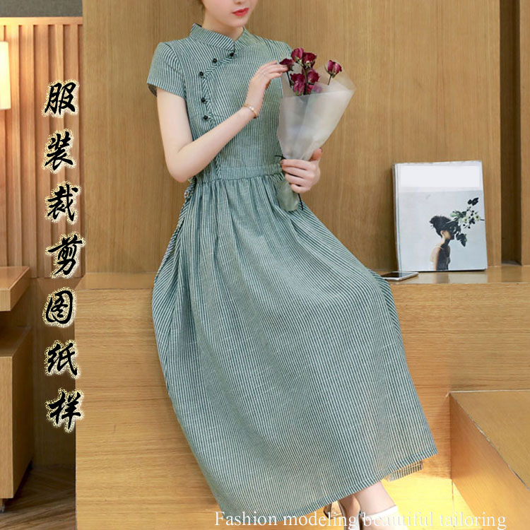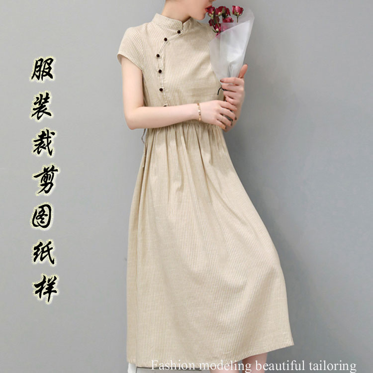 New summer cotton and linen dress pattern retro improved cheongsam slim skirt women's model cutting drawing