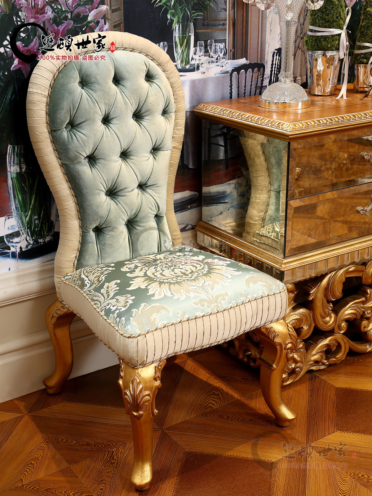 European luxury villa solid wood carving dining table and chairs High-grade gold leaf French luxury round dining table dining table 1 8 meters