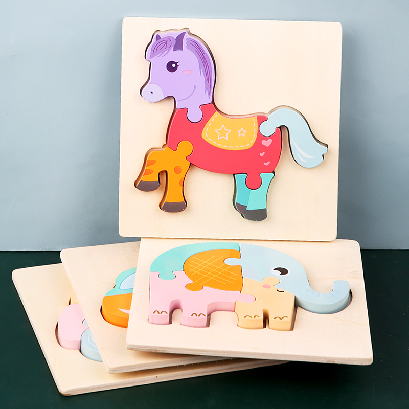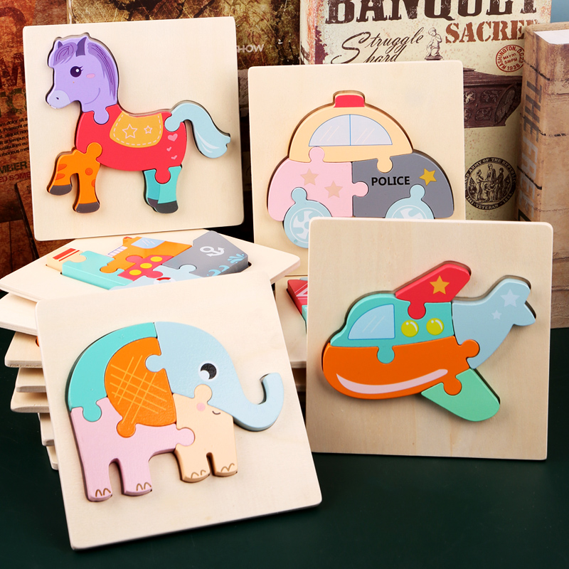 Early childhood children puzzle puzzle force development Early education 3D wooden three-dimensional baby 1-2 and a half years old boys and girls 6 educational toys