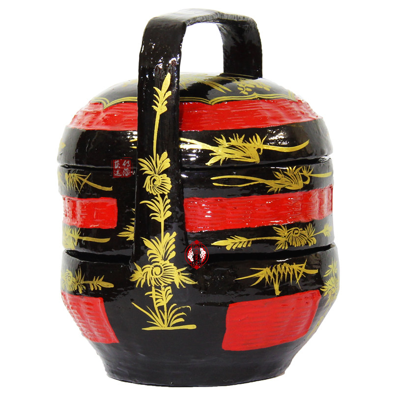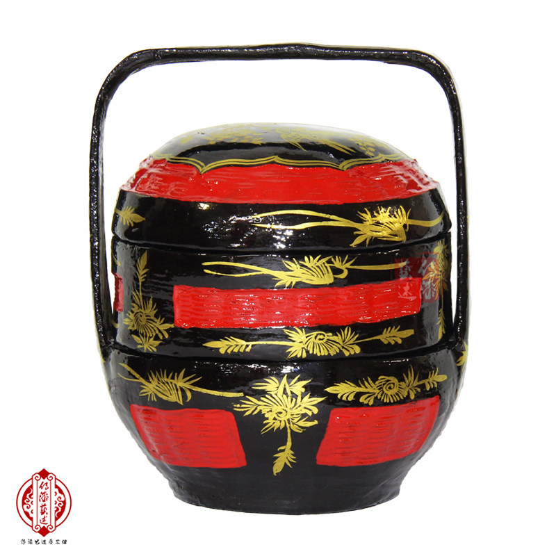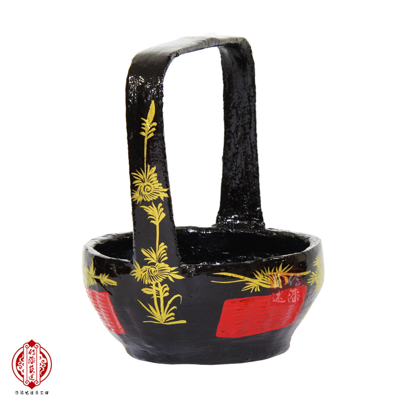 Yongchun lacquer basket folk handicraft hand-painted flower and bird lacquer bamboo weaving wedding jewelry burning incense basket bye bye basket lacquer art