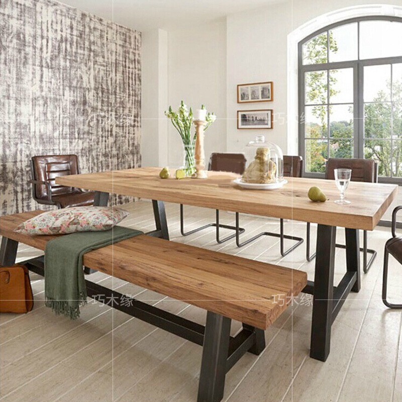 Iron bench simple solid wood dining table long chair tea bench loft American display table shoe stool customization