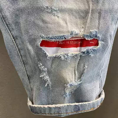Bleached cat beard, hand scraping, electric mill, needle stitch, embroidery, tie-dyeing, sanding, sling, sling, sling, dyed, Stone Mill