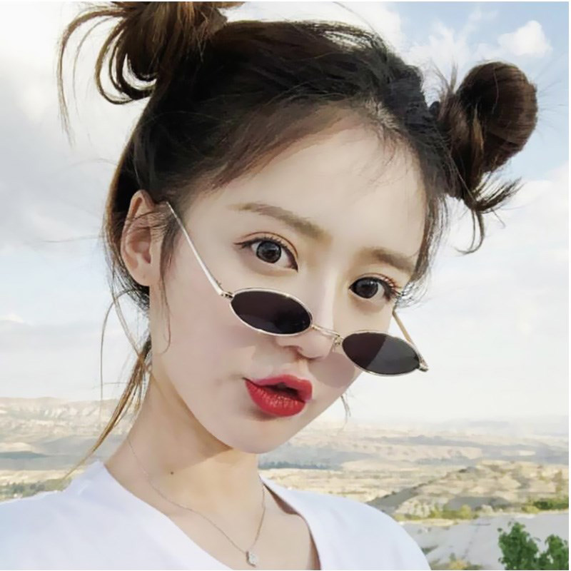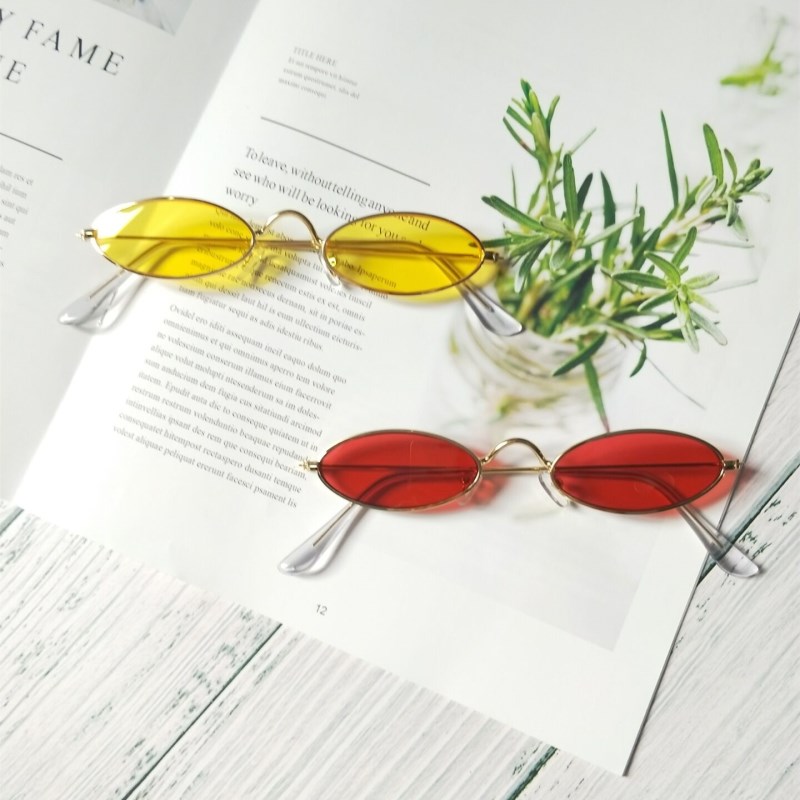 Gold edge black oval glasses yellow oval eye one red oval eye one yellow oval chain red oval glasses chain gold rim sunglasses black oval glasses chain