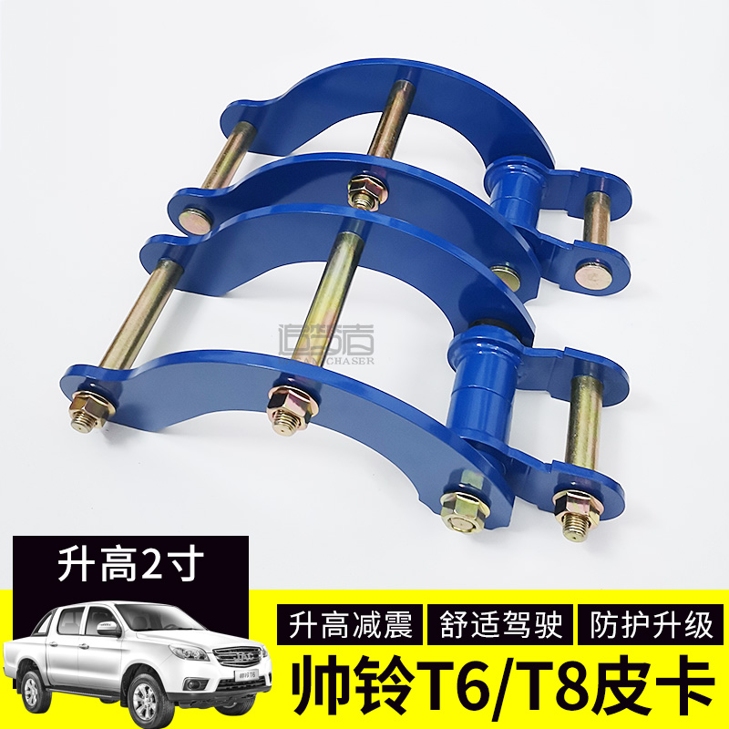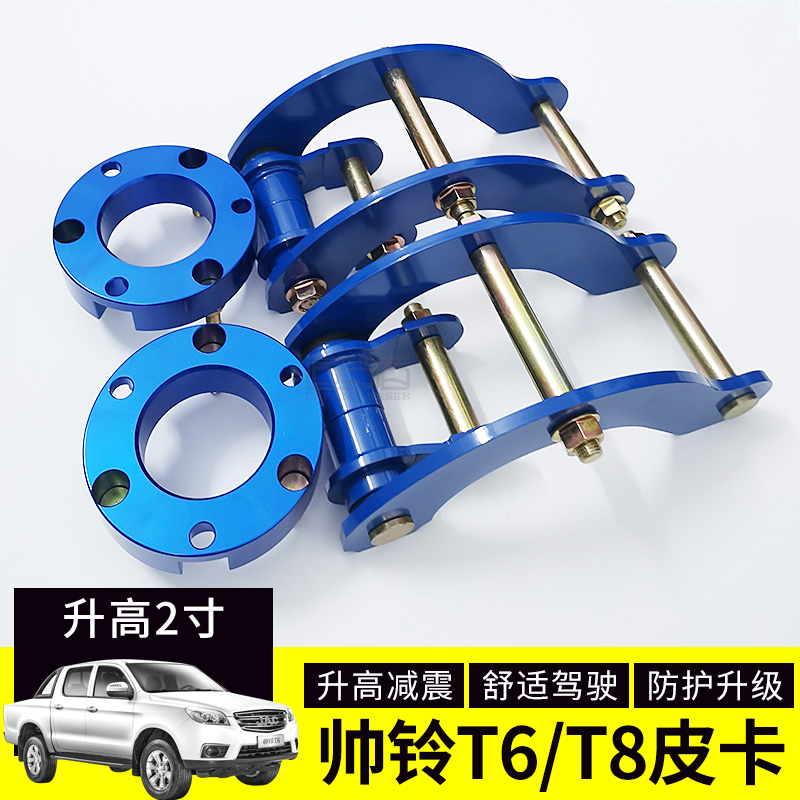 T6 front raised 2 inch spacers (1 pair) T6 rear raised 2 inch lifting lugs (1 pair) T6 front and rear raising kits (1 set) T8 front raised 2 inch spacers (1 pair) T8 rear raised 2 inch lug