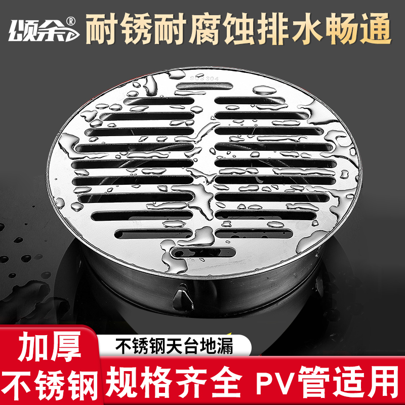 304 stainless steel plug-in card roof floor drain balcony garden floor drain large displacement 75 tube cap 50 floor drain cover 110
