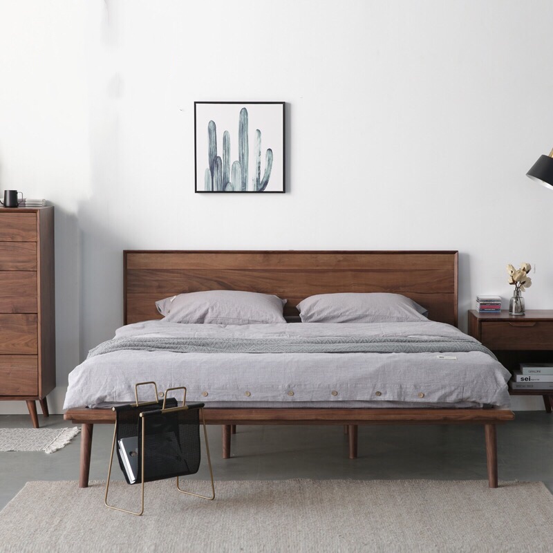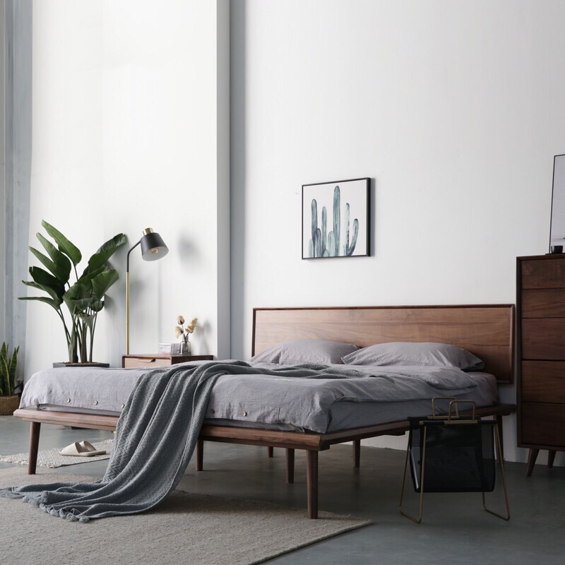 Nordic Japanese-style full-frame oak black walnut modern minimalist 1 8 meters 1 5 meters full solid wood bedroom double bed