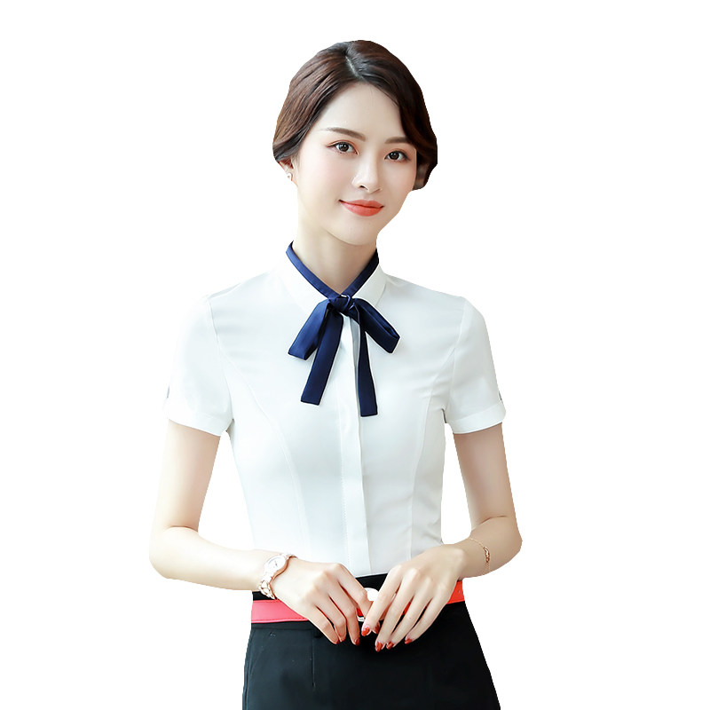 2020 Summer new white shirt woman short sleeve Korean version sashimi 100 lap professional suit positive dress working clothes lining clothes