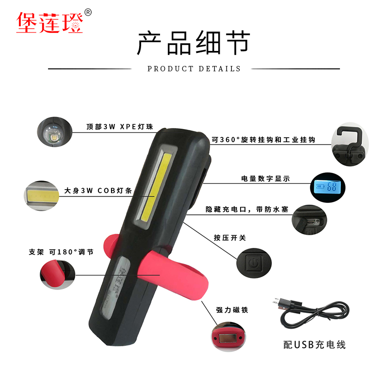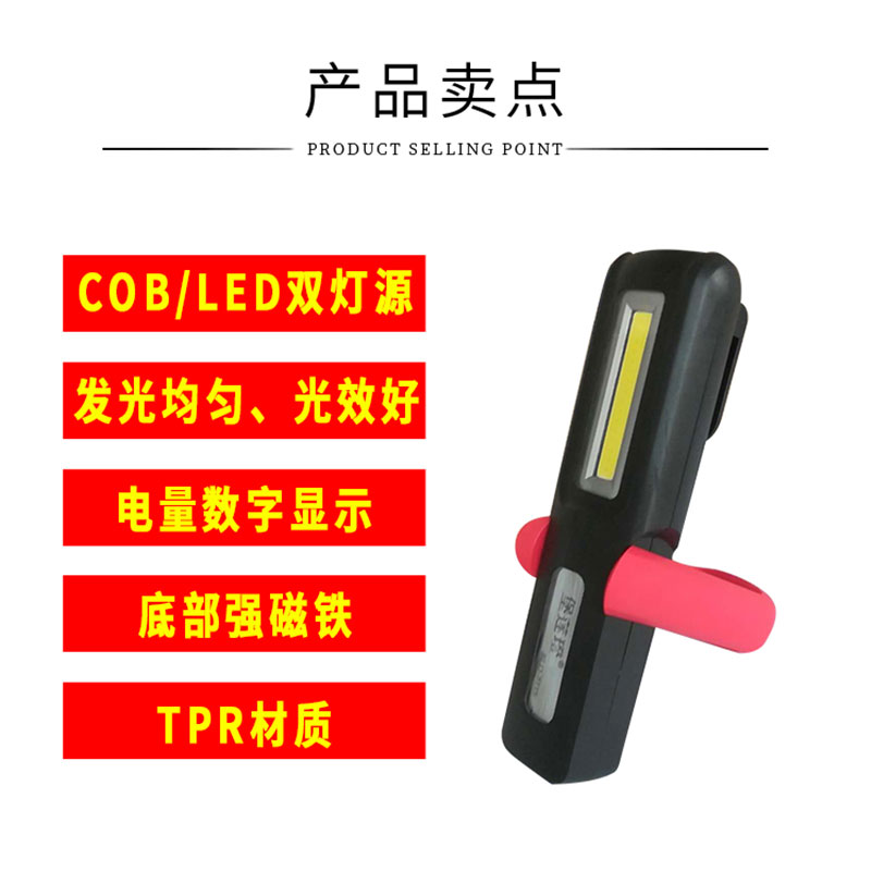 Digital display rechargeable car maintenance car magnet emergency light COB outdoor lighting inspection light capture pattern function
