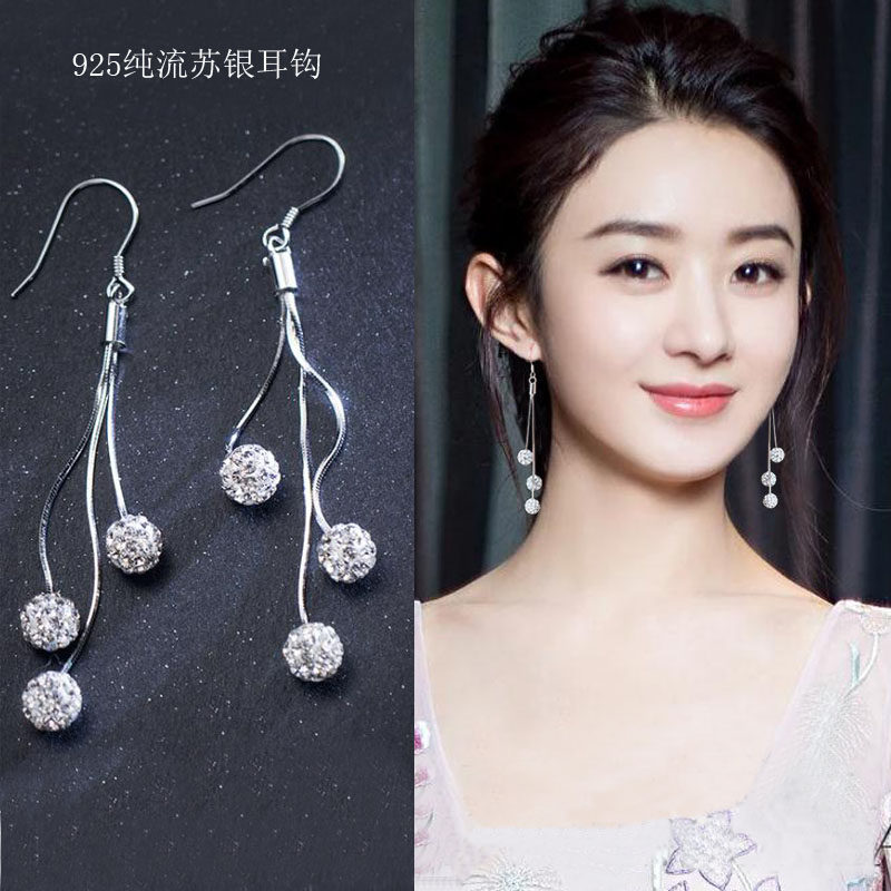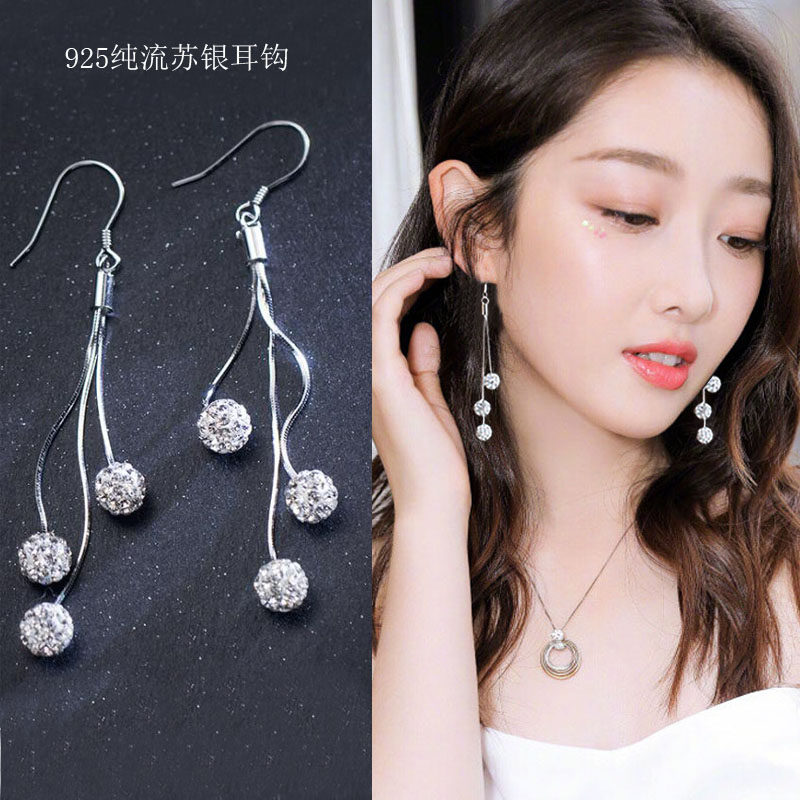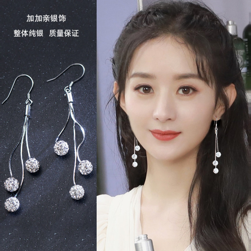 Tassel earrings 2022 new trendy long version temperament ball all-match personality net red s925 ear needle female sterling silver earrings