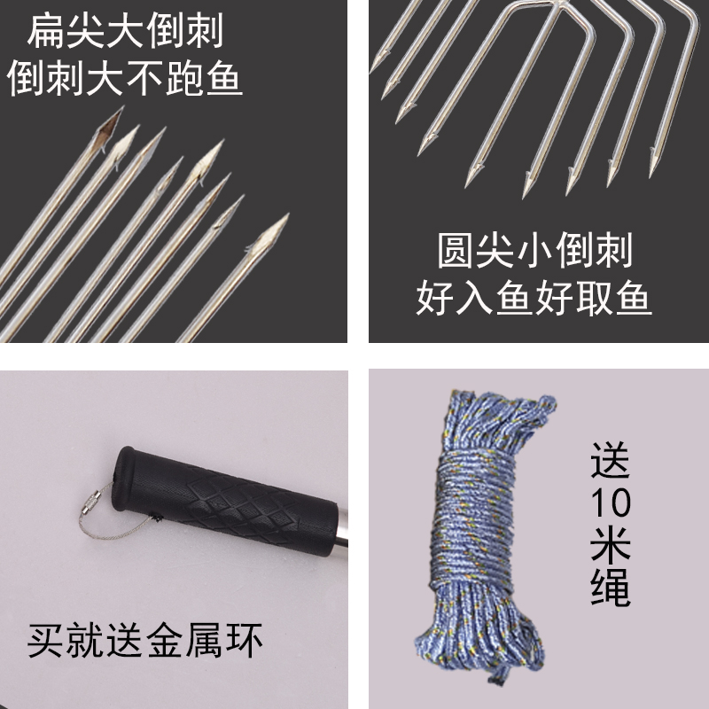 Multifunctional super hard large barbed harpoon stainless steel head nine teeth with rod Fishing artifact Harpoon rod retractable steel fork
