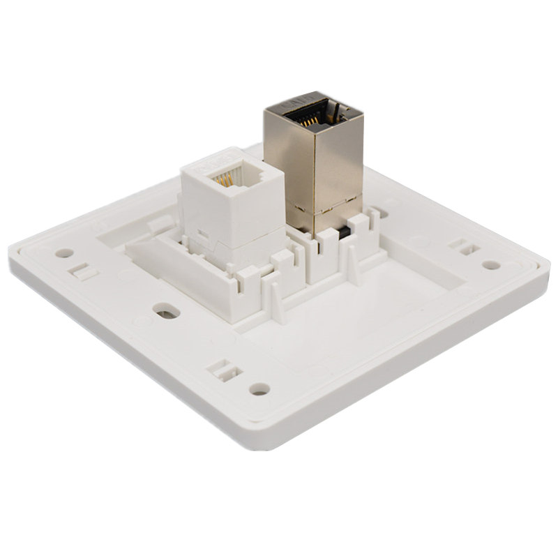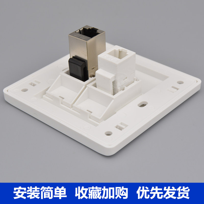 Six types of straight-through shielded network cable port with telephone socket Type 86 dual-port computer direct plug Gigabit Internet phone panel