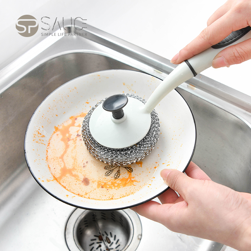 Home Long Handle Pan Brush Gas Stove Decontamination Clean Ball Brush With Handle Brush Head Removable Brush Pan Dishwashing Brush