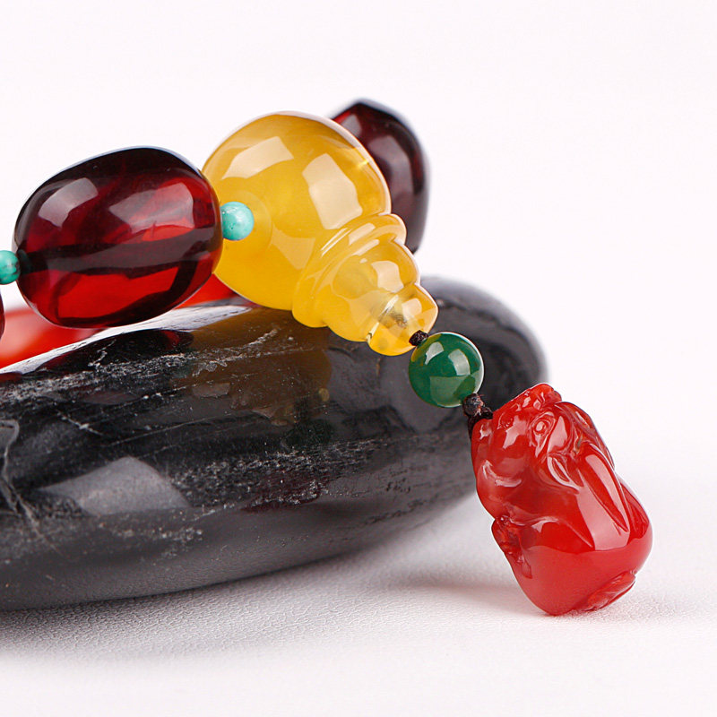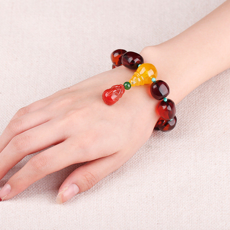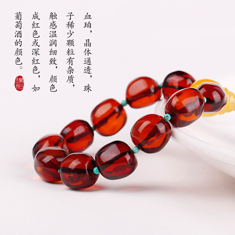 Pu Cai natural amber beads Men's and women's blood pearl rough hand string Baltic single circle hand chain Buddha beads accessories