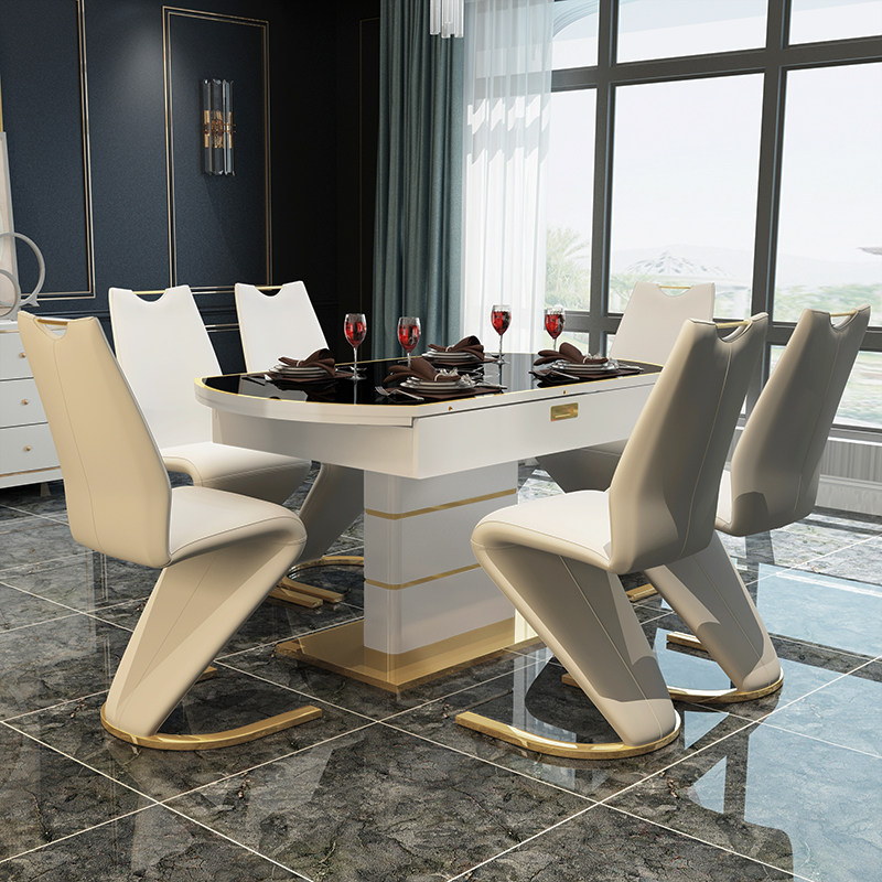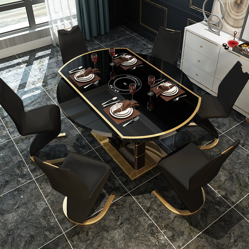 Postmodern dining table and chair combination retractable and foldable household modern dining table light luxury induction cooker multifunctional round dining table