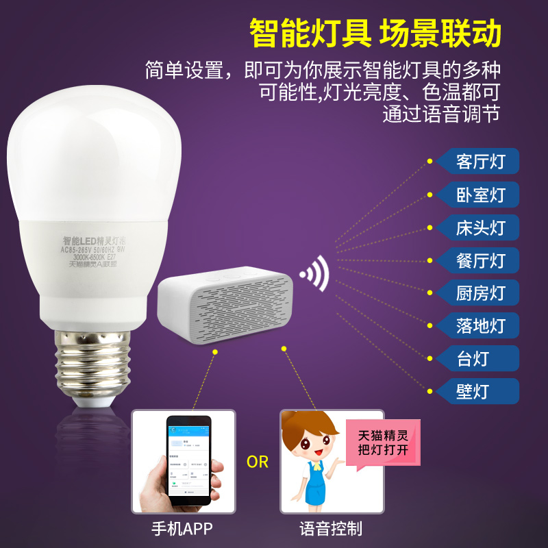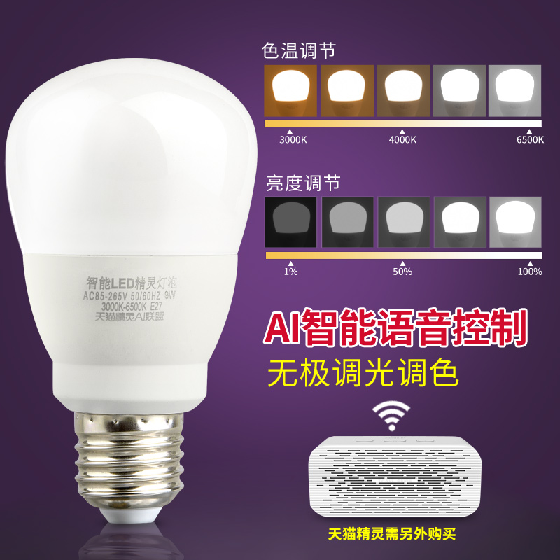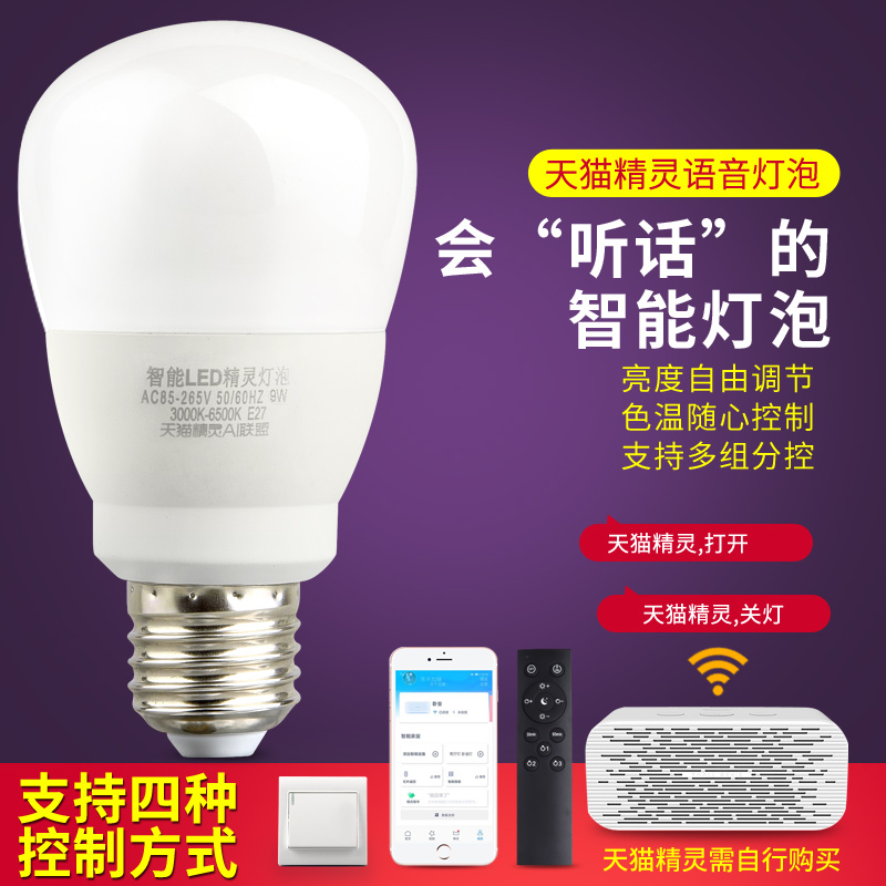 Smart lighting Tmall Genie smart home bulb voice control voice control light wifi mobile phone remote control light e27 screw remote control light bulb LED light home high power lighting 6w9w12w