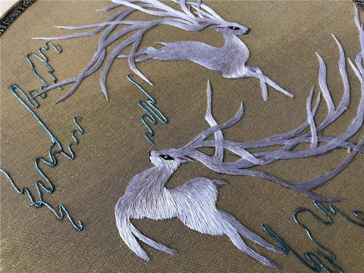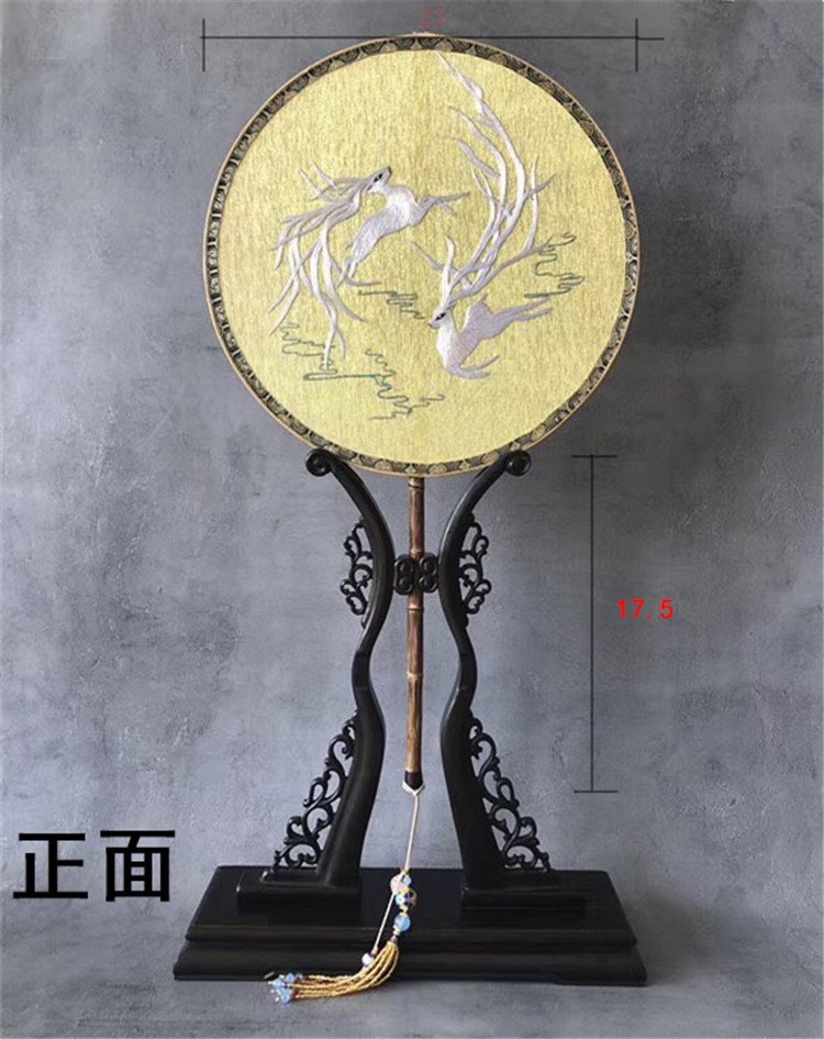 Suzhou embroidered kesi fan accompanied by a deer Suzhou group fan double-sided embroidery handmade silk fan with base