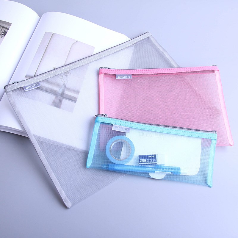 Deli A4 document bag Transparent grid zipper file office supplies A5 information bag Korean small fresh paper ticket storage bag A6 mesh zipper bag Student stationery exam information bag