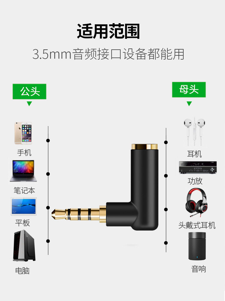 CE-LINK 3 5mm Gong-to-mother audio adapter elbow L shape 90-degree headphone speaker extension conversion plug