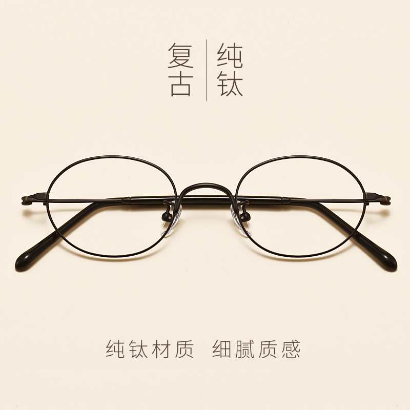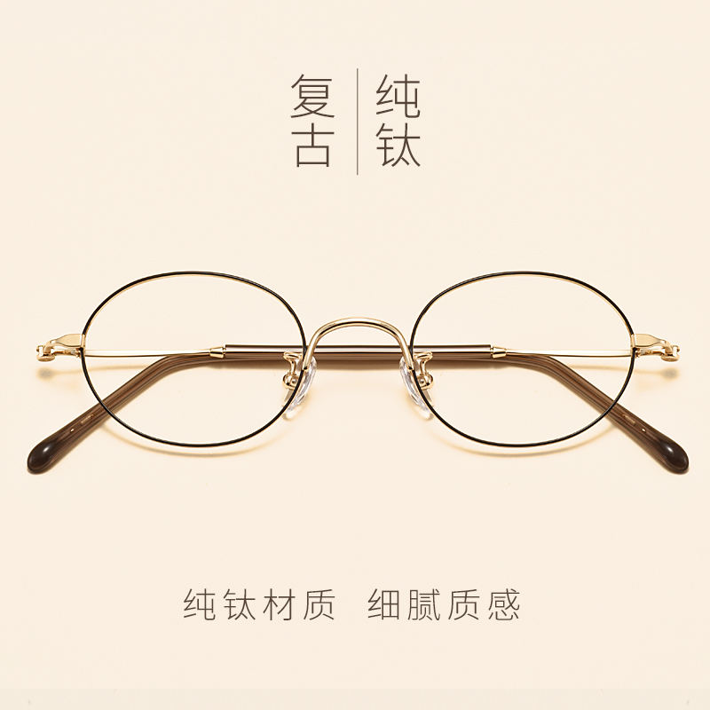 Anti-radiation rose gold rim spectacle frame female small round face with finished product with degree of anti-blue light pure titanium spectacle frame male