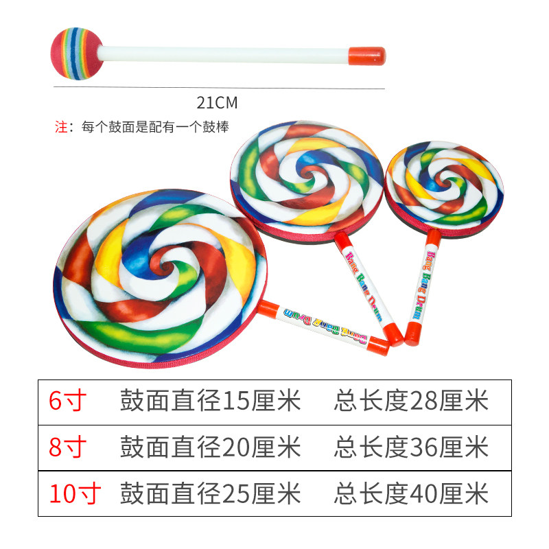 Orff percussion musical instrument lollipop drum music drum 6 inch 8 inch 10 inch kindergarten children's puzzle early education
